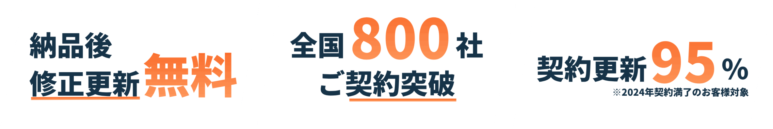 | サポート | 専任サポート。 更新も基本無料 | 標準的なサポート範囲 | 修正・更新は 都度課金 |